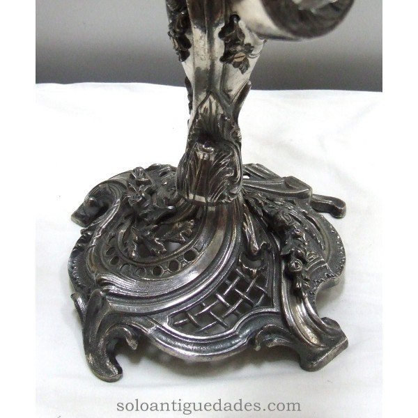 Pareja de candelabros con cinco brazos y pie derecho, realizados en bronce plateado, con estilo vinculado con el movimiento art nouveau. Toda la pieza tiene una composici