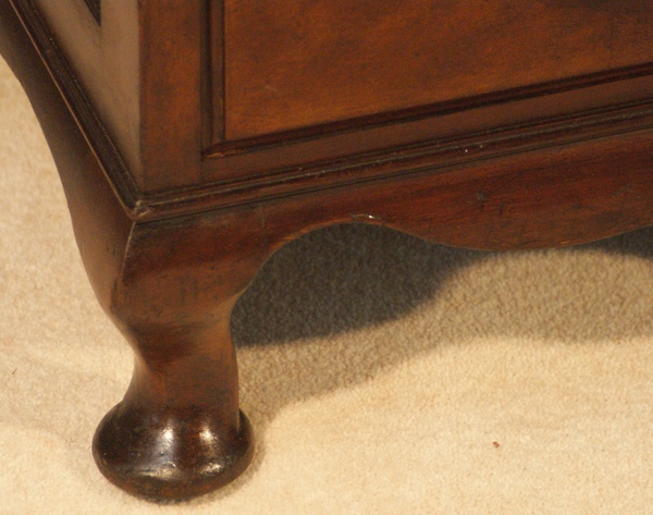 Sale Price £2500. This medium sized pedestal desk dates from the Edwardian period and is made from a rich deep shade of mahogany with panelled sides and rear. It stands on attractive short cabriole legs and has feature pull out slides to each side of the centre drawer as well as the classic nine drawer front elevation. With brass swan neck handles and an embossed dark green leather writing surface this is a particularly handsome pedestal desk of excellent proportions suitable for a home office, study or work area or indeed a business looking for a genuine piece of Antique Office Furniture.