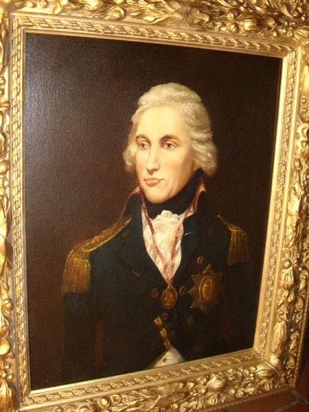 PRESENTED IN A GILT WOOD & PLASTER PERIOD FRAME, DEPICTING HORATIO LORD NELSON ADMIRAL OF THE FLEET.
