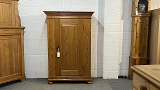 Here’s a large old pine storage cupboard that could also be used as a children’s wardrobe if the shelves were removed. With an internal depth of 17.5", it may not be quite deep enough for adult garments to hang front-to-back, but it’s a very versatile and attractive piece.
