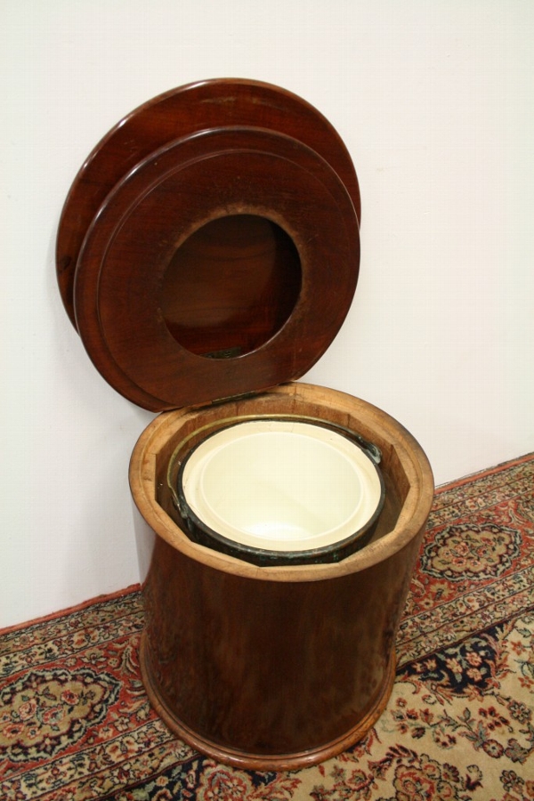 Mid Victorian figured Spanish mahogany circular commode. Finest quality materials and workmanship. Interesting plant holder?
